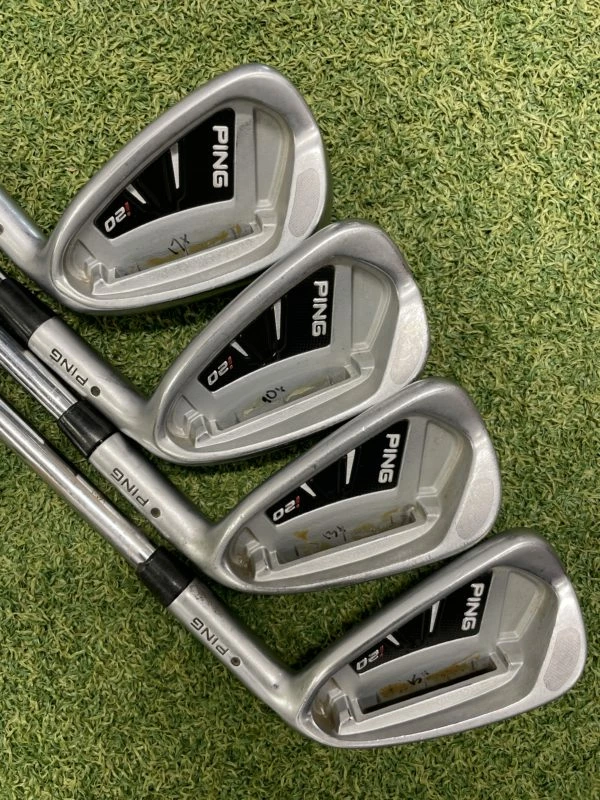 Ping I20 5-6-8-9 IRONS Missing plate//stiffShaft: FSB KBS TourCondition RatingOverall -Head -5Shaft -7Grip -6This is how we rate the condition of our golf equipment;10 (NEW) – Unused, perfect mint condition9 (EXCELLENT) – Used with very minor signs of light use8 (VERY GOOD) – Used with normal signs of light use7 (GOOD) – Shows signs of normal use with some minor scratches or marks on paintwork6 (FAIR) – Shows noticeable usage marks and scuffs that do not affect performance5 (WELL USED) – Show heavy signs of use, nothing to affect performanceThe images featured are of the actual product we are selling.If you have any questions about a product featured on our website or want to know more information please email [email protected] or call the shop 0191 217 0519