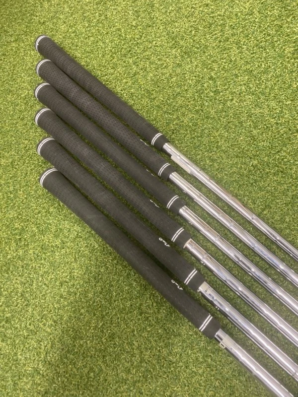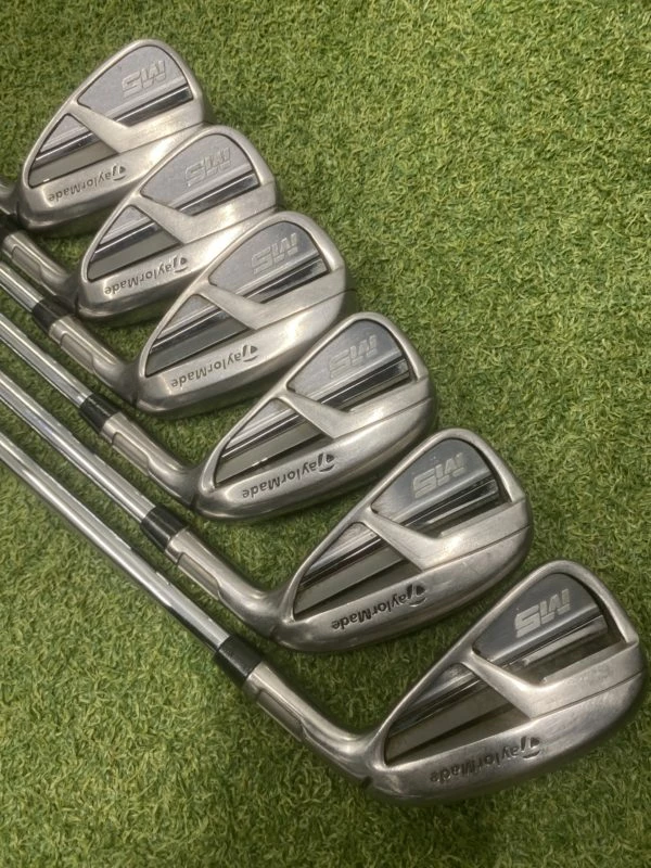 Taylormade M5 irons 5-PW // StiffShaft N.S.PRO StiffCondition RatingOverall – 8Head – 7.5Shaft – 8Grip – 8This is how we rate the condition of our golf equipment;10 (NEW) – Unused, perfect mint condition9 (EXCELLENT) – Used with very minor signs of light use8 (VERY GOOD) – Used with normal signs of light use7 (GOOD) – Shows signs of normal use with some minor scratches or marks on paintwork6 (FAIR) – Shows noticeable usage marks and scuffs that do not affect performance5 (WELL USED) – Show heavy signs of use, nothing to affect performanceThe images featured are of the actual product we are selling.If you have any questions about a product featured on our website or want to know more information please email [email protected] or call the shop 0191 217 0519
