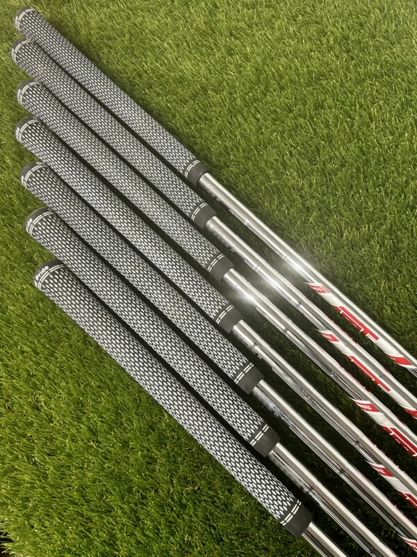 Titleist T300 Irons 5-GW // RegShaft TrueTemper AMT RegularCondition RatingOverall – 9.5Head – 9.5Shaft – 9.5Grip – 9.5This is how we rate the condition of our golf equipment;10 (NEW) – Unused, perfect mint condition9 (EXCELLENT) – Used with very minor signs of light use8 (VERY GOOD) – Used with normal signs of light use7 (GOOD) – Shows signs of normal use with some minor scratches or marks on paintwork6 (FAIR) – Shows noticeable usage marks and scuffs that do not affect performance5 (WELL USED) – Show heavy signs of use, nothing to affect performance